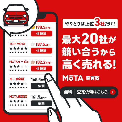 そんな時は、web上で簡単に査定・比較でき、スムーズに買取をしてもらえる「MOTA車買取」をぜひご利用ください。